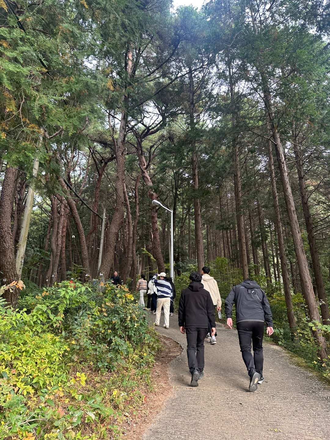 편백나무 숲을 충분히 만끽한 뒤, 가벼운 발걸음으로 하산했습니다. 길을 따라 내려오면서 볼 수 있었던 단풍이 물들어가는 풍경은 정말 아름다웠습니다.