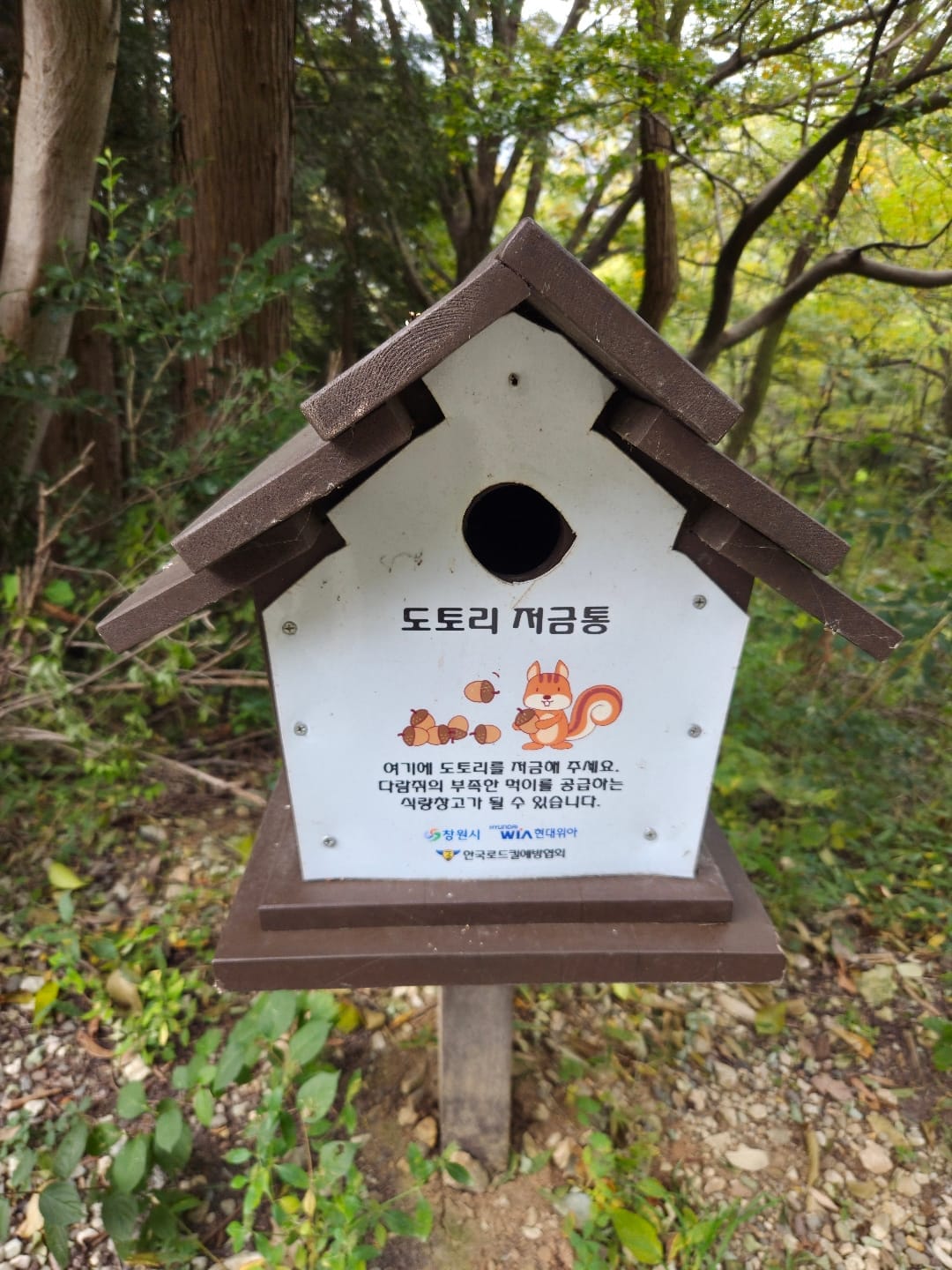 거대한 편백나무 사이 숲길은 공기가 좋아 코가 뚫리고, 머리가 맑아지는 기분이었습니다. 숲길을 따라 걷다 보니 '도토리 저금통'이라는 귀여운 다람쥐 식량창고를 발견했습니다. 이는 등산객들이 떨어진 도토리를 주워 가는 것을 방지하고, 다람쥐들의 먹이를 보호하기 위해 만들어졌다고 합니다. 자연 속에서 작은 배려가 돋보이는 공간이었죠. 이처럼 자연과 조화롭게 살아가는 모습은 정말 따뜻하고 의미 있는 발견이었습니다.