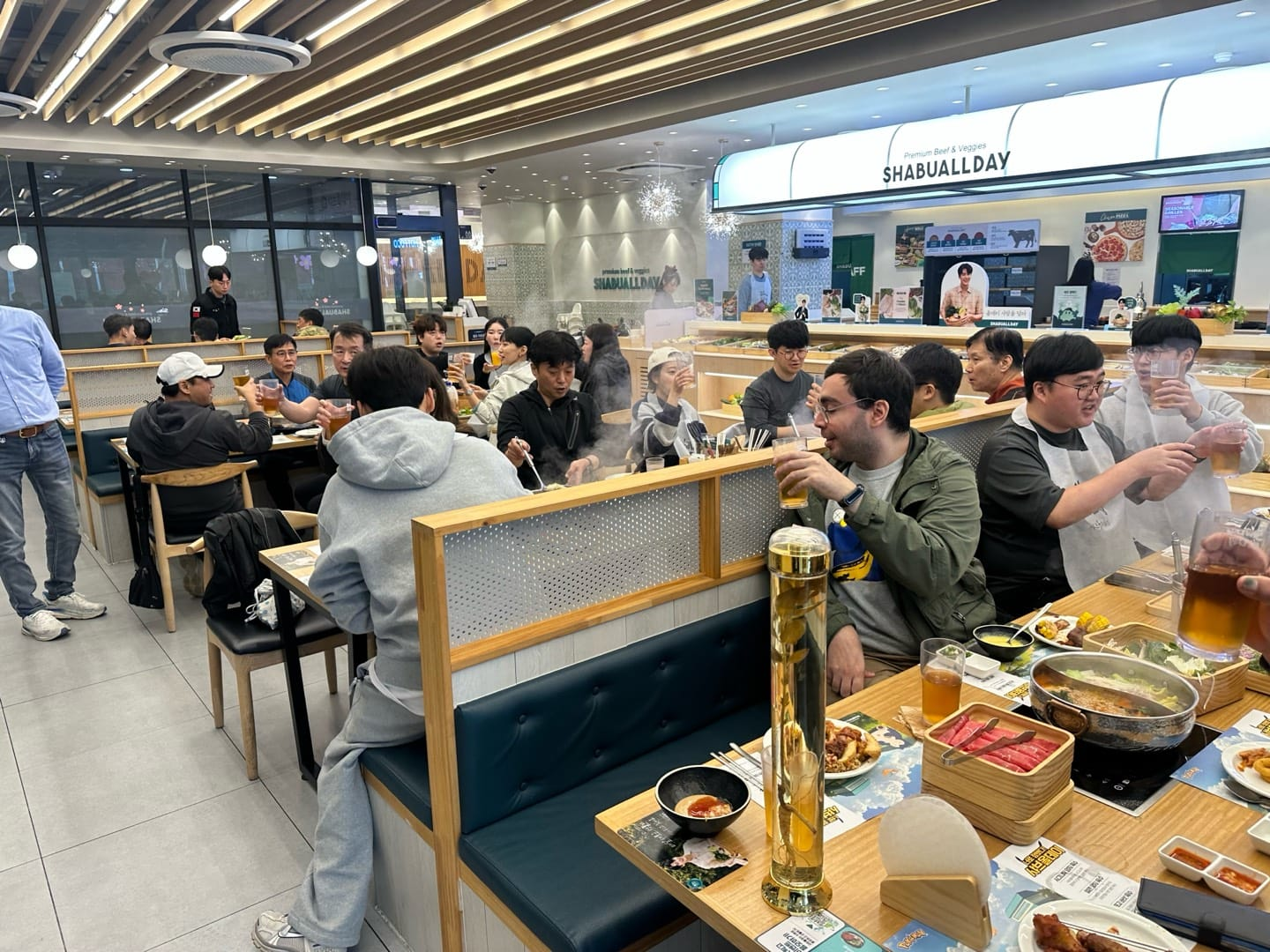 하산 후, 맛있는 샤브샤브 식당에서 푸짐한 회식이 이어졌습니다. 맛있는 음식을 함께 나누며 동료들과 더 가까워지고, 그동안 나누지 못했던 이야기들을 편안하게 주고받을 수 있었습니다.