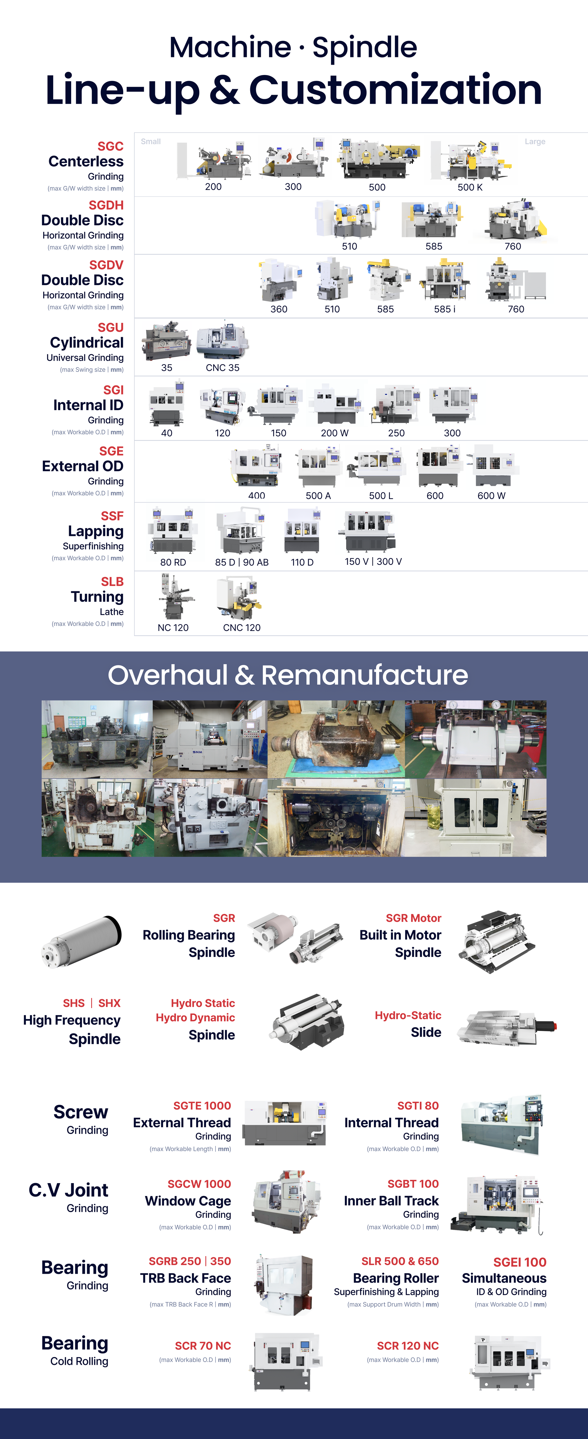 우리 제품은 여러 산업 분야에 맞춰 다양한 제품군을 제공합니다. 산업 기계부터 스핀들 수리 까지, 고객의 다양한 요구를 충족합니다.
