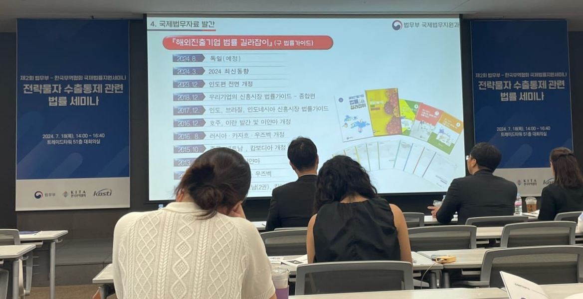 이번 세미나를 통해 해외진출기업 법률지원, 수출 통제법령 등에 대한 이야기를 들을 수 있는 시간이었습니다. 어떤 내용인지 알아볼까요?