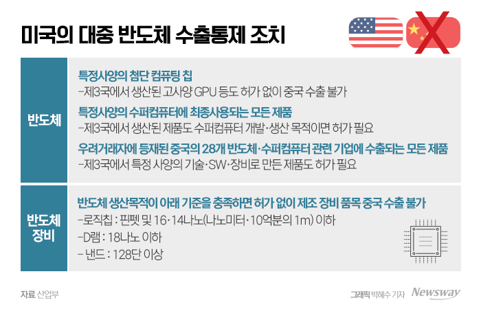 미국의 대중(中) 반도체 수출통제 조치 ⓒ산업부, Newsway