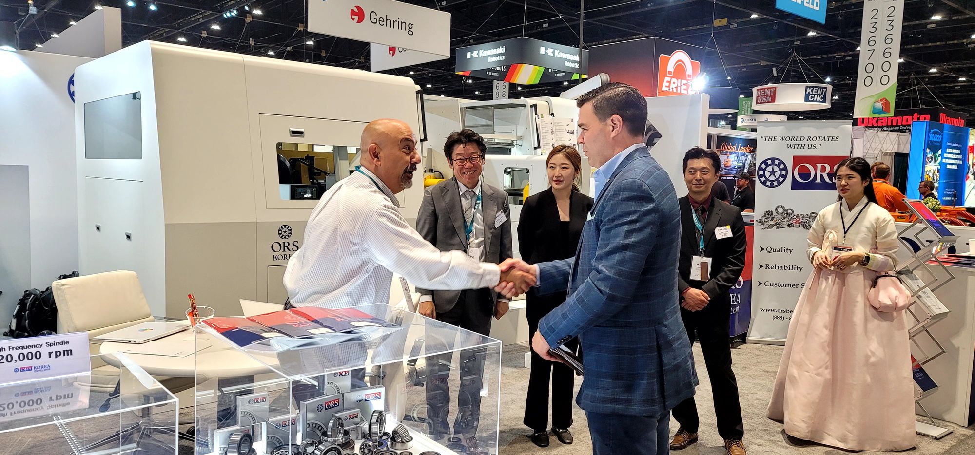 이번 전시회는 아틀란타에 위치한 오알에스코리아 미국 법인에 계신 무라(Murtat)님이 함께 참여해주셨습니다. 오알에스코리아의 주력 제품인 센터리스 기계(Centerless Grinding Machine) SGC 500K, 스핀들 그리고 베어링을 전시하였고, 이 제품들은 미국 시장 사람들에게 큰 주목을 끌었습니다.