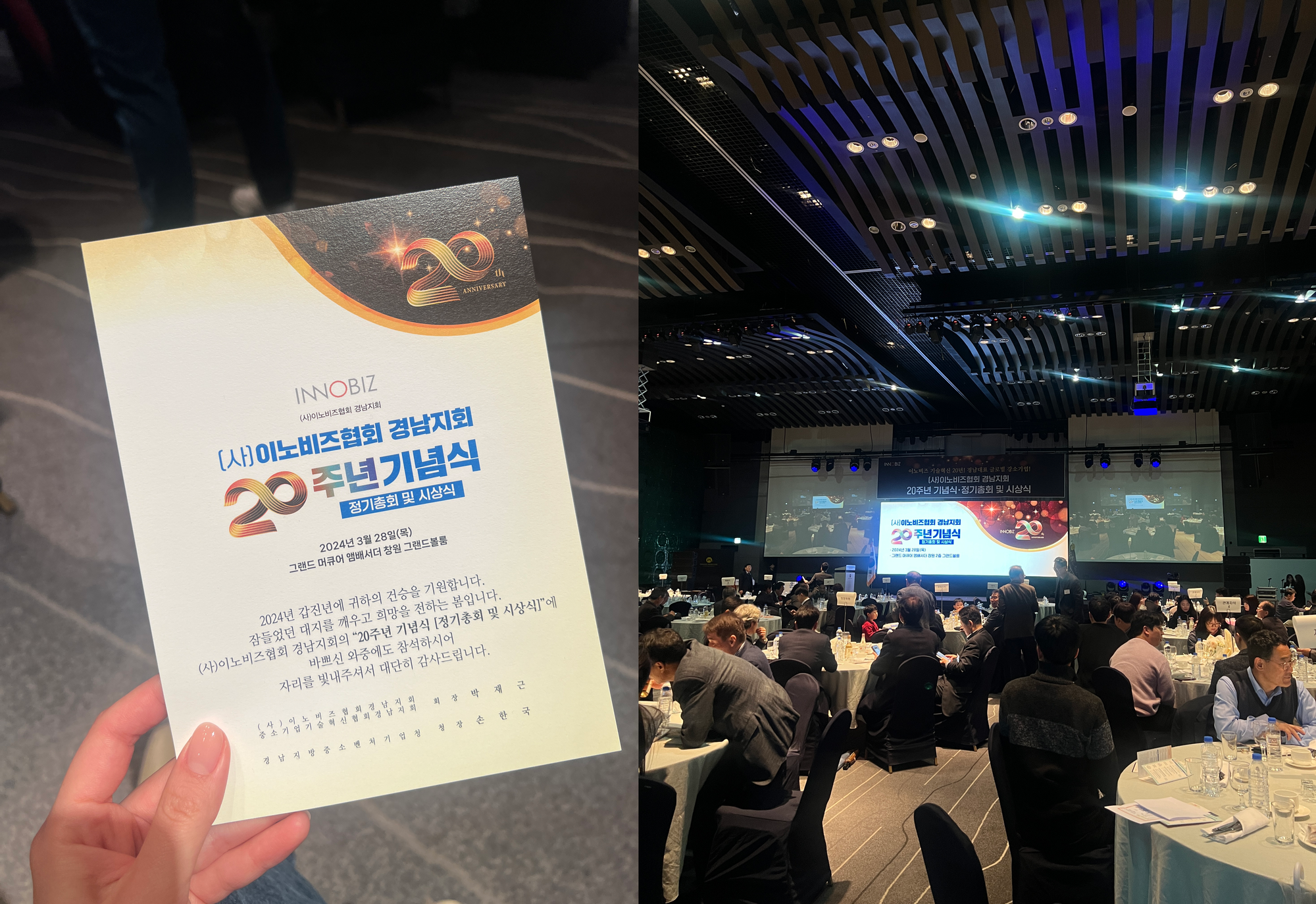 2023년 11월 28일, 창원 그랜드 머큐어 앰버서더에서 열린 이노비즈협회 경남지회 20주년 기념 행사에 오알에스코리아가 참석했어요! 🍀