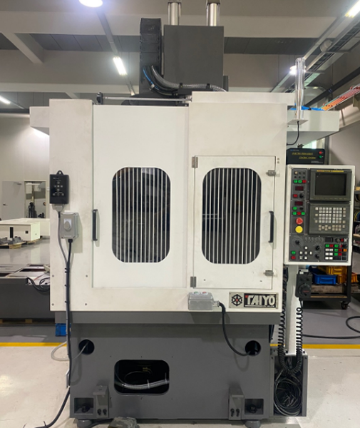 In this Taiyo IGV-4N vertical grinding machine retrofit, the most critical focus was modifying the existing collet-based spindle structure to a magnetic chuck with a shoe support system.